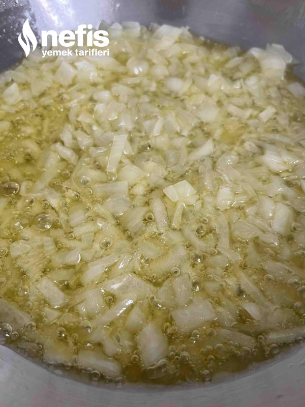- Zeytinyağını tencereye koyalım. Soğanlarımızı ekleyelim. Soğanlar biraz kavrulsun.