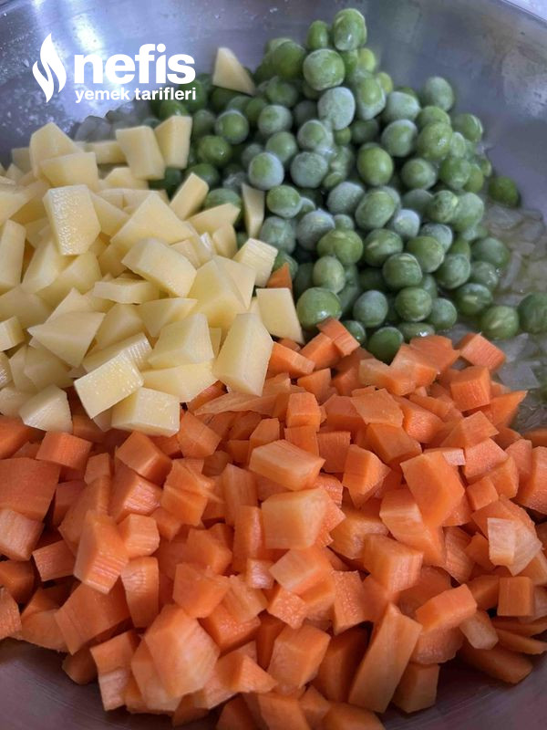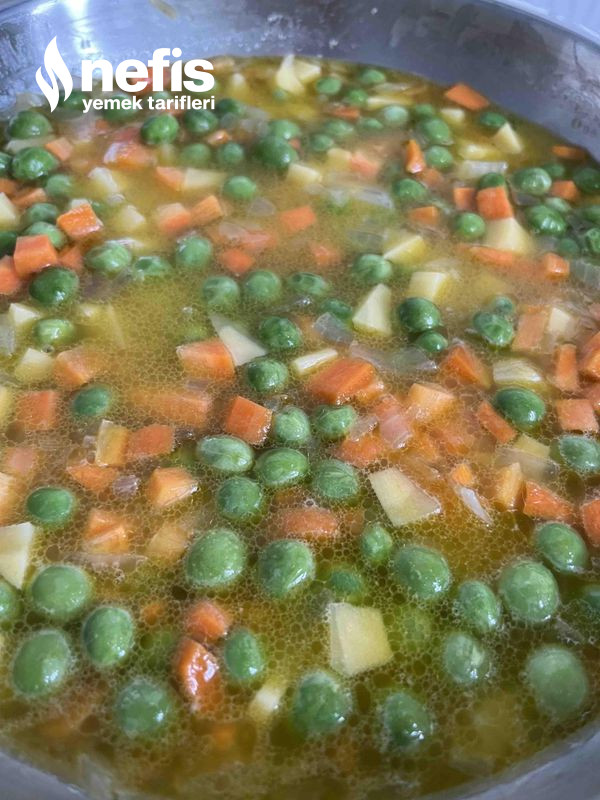 - Bezelye, havuç ve patatesleri tencereye koyalım. 1 adet limonu sıkalım. Tuzumuzu da ekleyelim.
