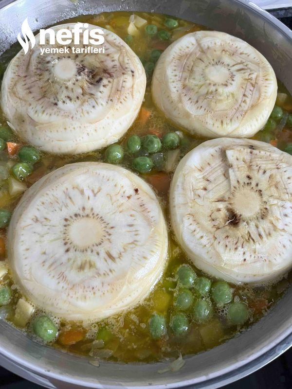 - Üzerine çanak enginarları karşıt çevirip, pişirmeye bırakalım.