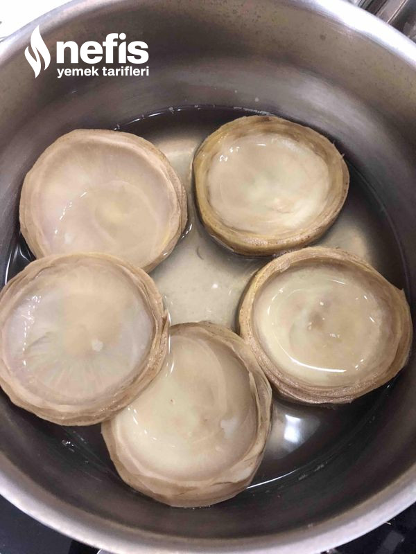 - Enginarlar az limon suyuyla birlikte 10-15 dk suda haşlanır.