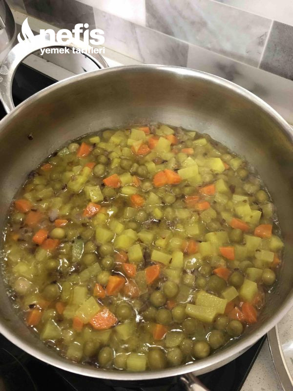 - Havuçların diriliği geçince minik küp doğranmış patates de ek edilir ve sotelenir.