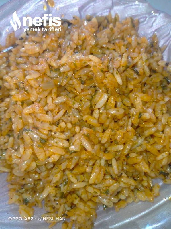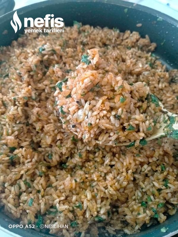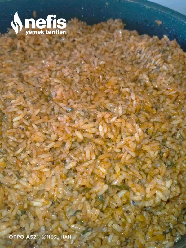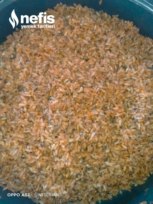 3. Ardından salça ekleyip kavuralım ,sonra baharatları ekleyelim, tuzu ekleyelim, bir iki karıştırdıktan sonra suyu süzülen pirinçleri ekleyelim.