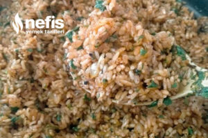 3. Ardından salça ekleyip kavuralım ,sonra baharatları ekleyelim, tuzu ekleyelim, bir iki karıştırdıktan sonra suyu süzülen pirinçleri ekleyelim.
