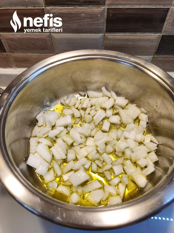 1. Soğan küp küp doğranır ve tencerede zeytinyağı ile biraz kavrulur.