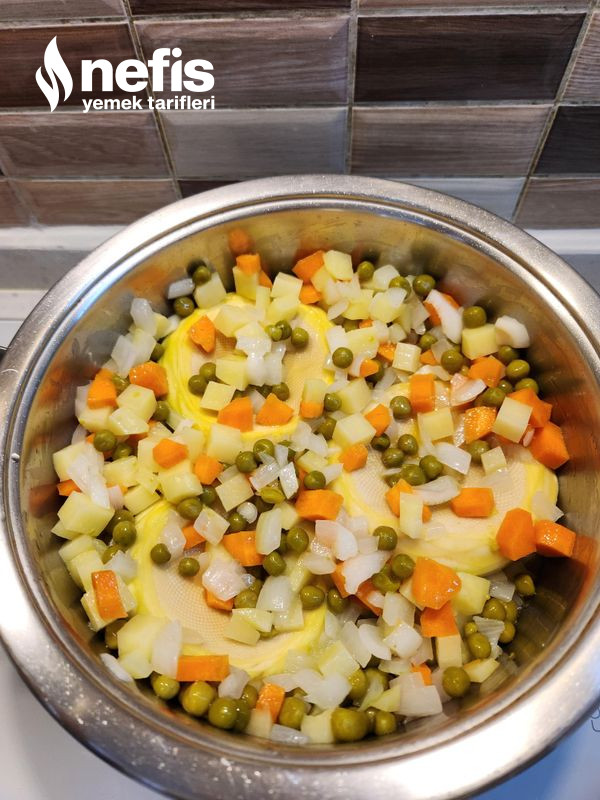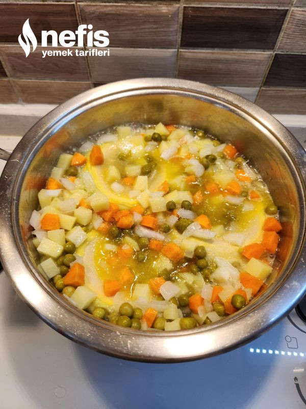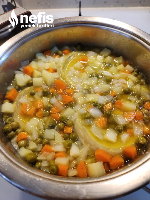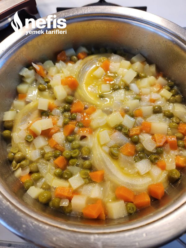3. Bezelye, enginar, su,tuz ve şeker de ek edilir. (isteğe nazaran limon suyu da ek edilebilir. ).