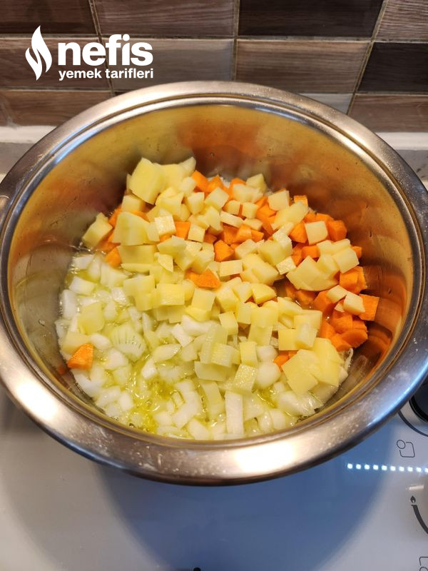 2. Küp küp doğradığımız havuç ve patates de ek edililerek biraz daha kavrulur.