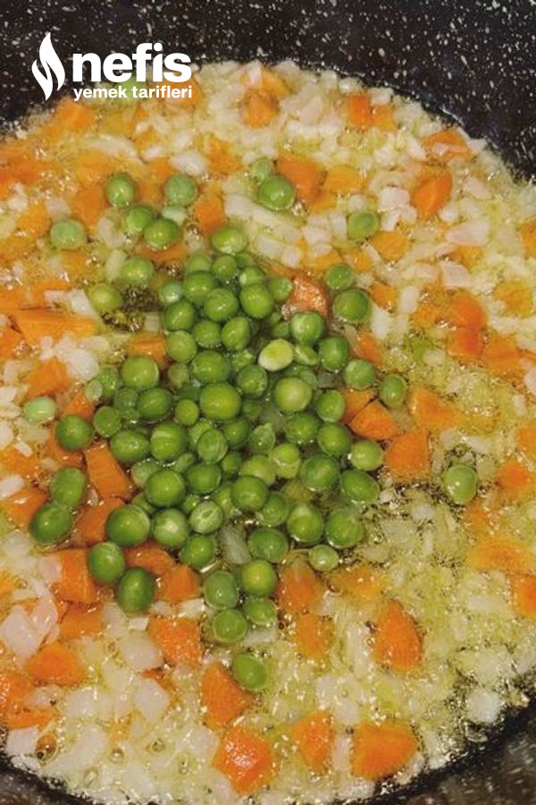 3. Bezelyemizi ekledikten sonra 5 dakika kadar kavurma sürecine orta ara karıştırarak devam ediyoruz.