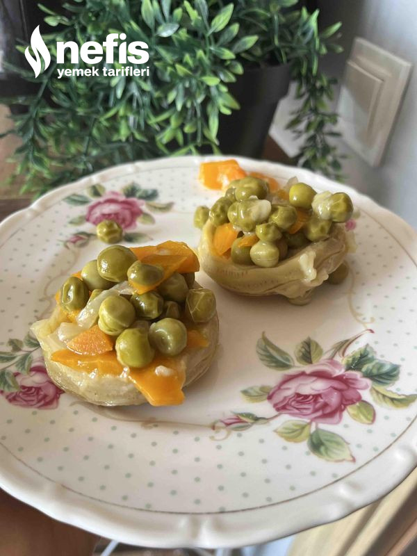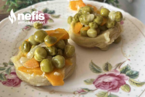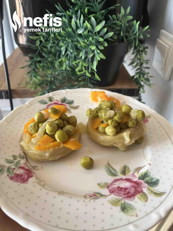 - Onun da üstüne bezelye ve en üste enginarları kapatalım.