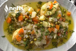 - Üzerine garnitürümüzü ek edelim 3 dakika daha karıştırarak kavuralım. Bir kaseye aldığımız zeytinyağı içine limon suyunu, un, tuz ve şekeri karıştırarak sos hazırlayalım.