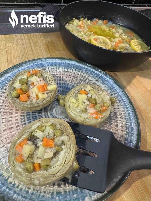 - 15dk sonra enginarları çevirip içine garnitür doldurun ve yumuşayıncaya kadar pişirin.