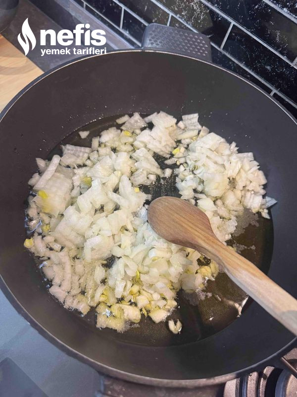 - Tencereye sıvı yağ ile zeytinyağını alalım. Soğan ve sarımsağı tuzunu da ek edip soteleyelim garnitürünü ekleyip karıştıralım.