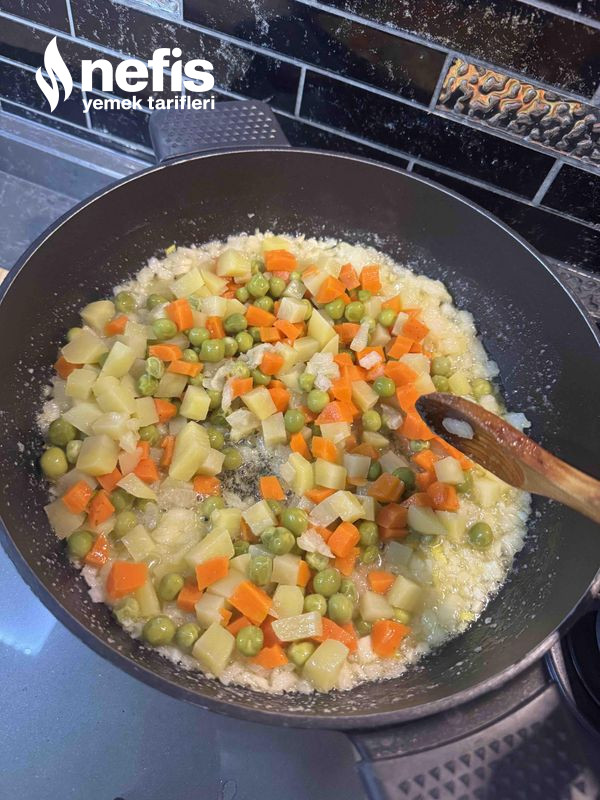 - Garnitürü kendiniz yapacaksanız sırasıyla bezelye, havuç ve patatesi birbirine ekleyerek haşlayın.