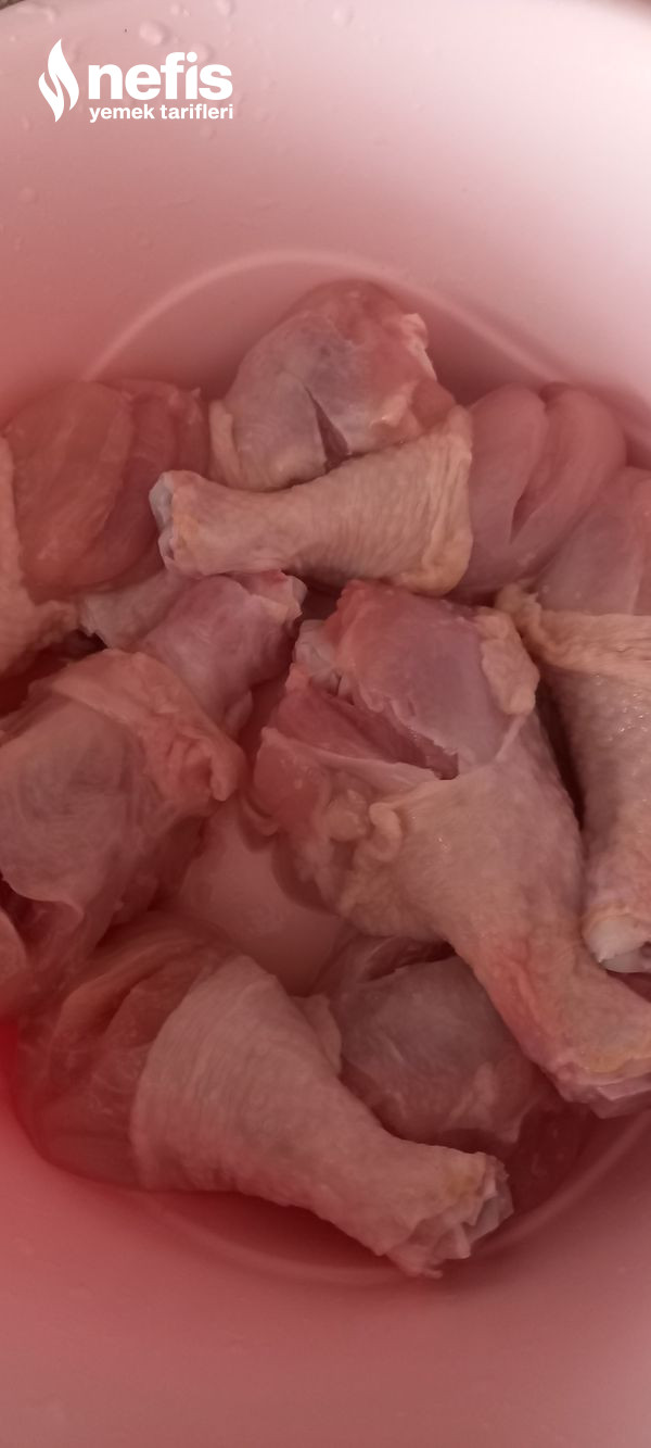 1. Tavukları hoş bir formda yıkayalım, süzüldükten sonra üzerine tuz serpelim, 15- 20 dk kadar bekletelim.