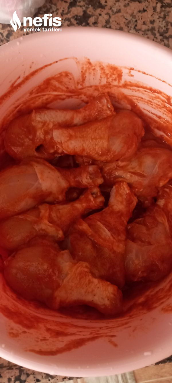 2. Bütün baharatları salçayı ve yoğurdu bir kasede karıştıralım ,sonrasında zeytinyağı ve suyla karıştırıp tavuklarla harmanlayalım.