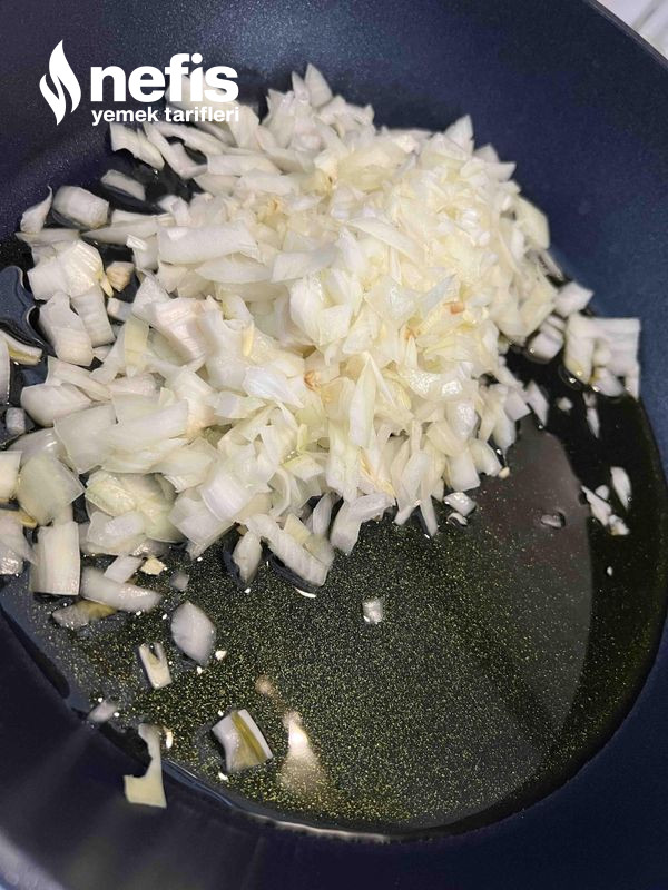 - Tencerenin tabanını kaplayacak kadar zeytinyağını tenceremize alalım, üzerine yemeklik doğradığımız soğanları ekleyip kavuralım.