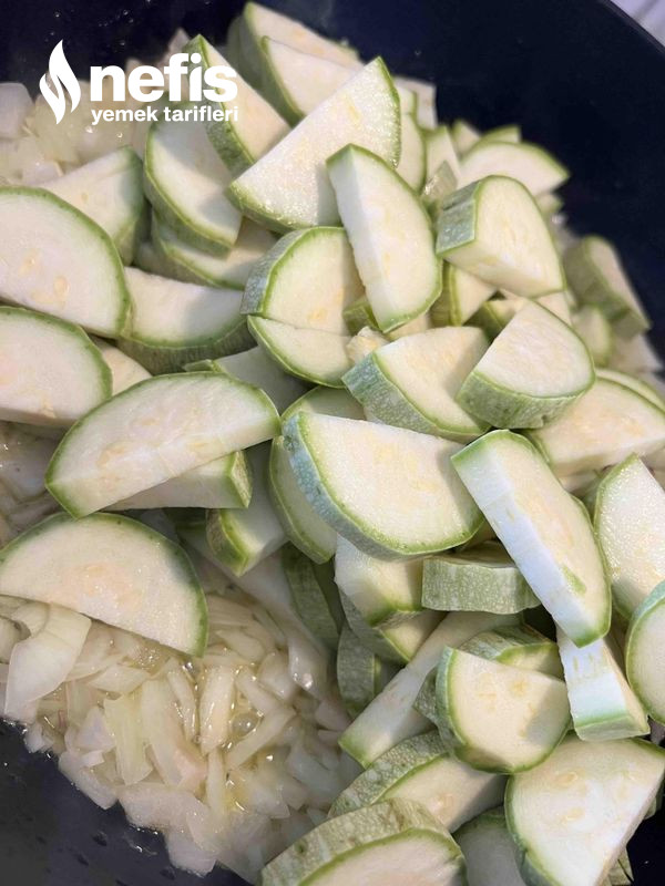- Hafif ölünce yarım ay biçiminde doğradığımız kabaklarımızı ekleyelim rengi dönene kadar kavuralım.