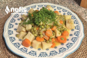 - Havuç kereviz ve bezelyeyi ekleyip karıştırıyoruz.