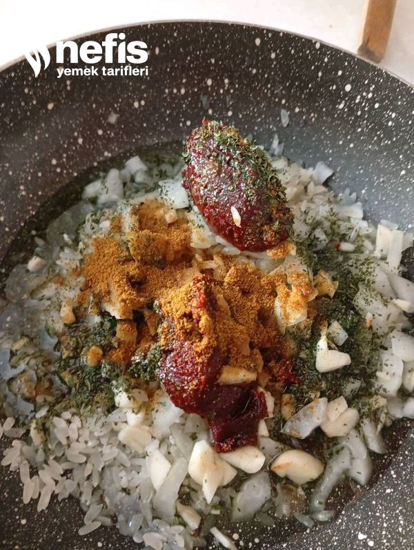- Diğer tarafta iç harcı için; Pirinçler yıkanır uygun bir tavaya alınır.