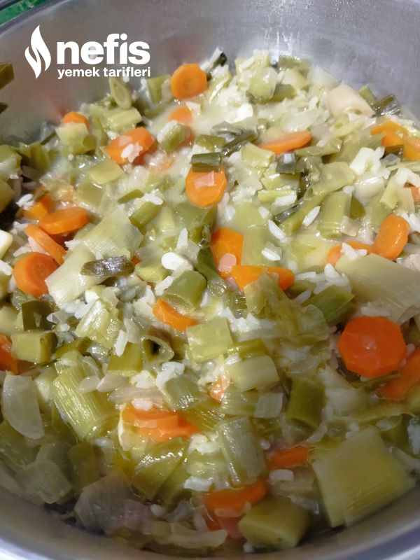 - En son pırasa koydum tekrar kavurdum,pirinç ekledim kavurdum,limon tuzunu ve tuzunu kattım.