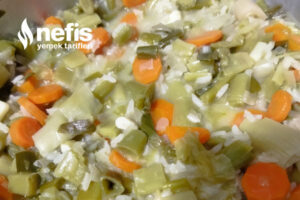 - En son pırasa koydum tekrar kavurdum,pirinç ekledim kavurdum,limon tuzunu ve tuzunu kattım.