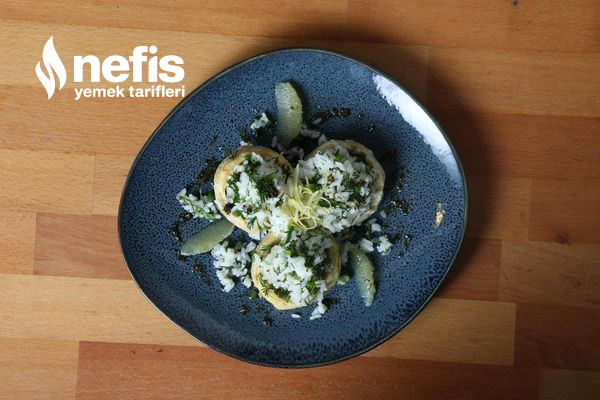 - Pirinçlerin üzerine taze otlar, tuz, limon eklenir karıştırılıp, enginarların üzerine koyulur.