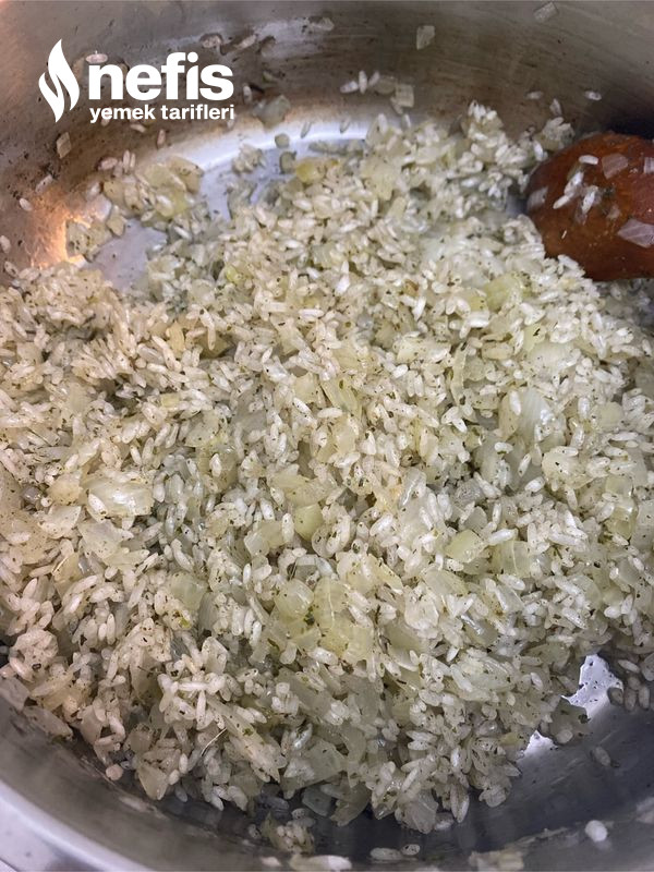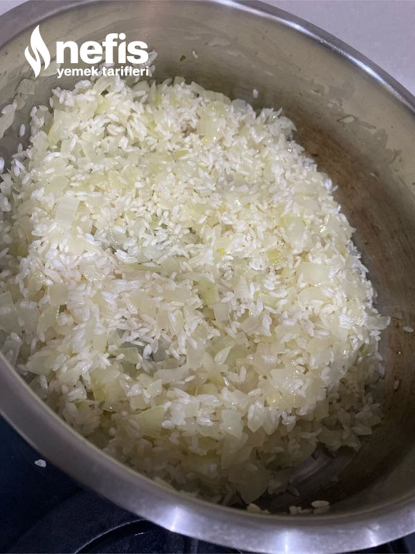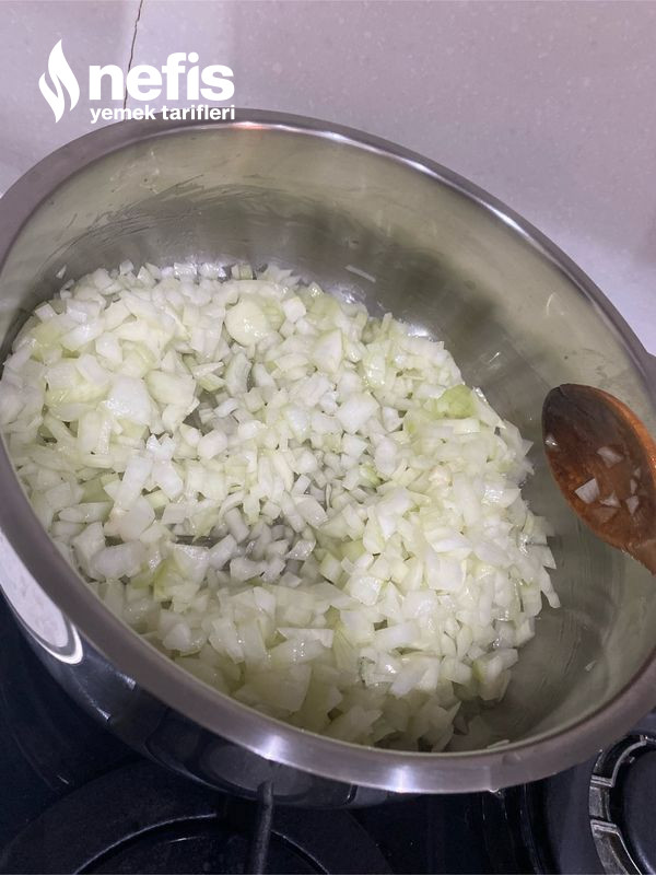 - 1 çay bardağından bir parmak eksik zeytinyağını döküp soğanları pembeleşinceye kadar pişir.
