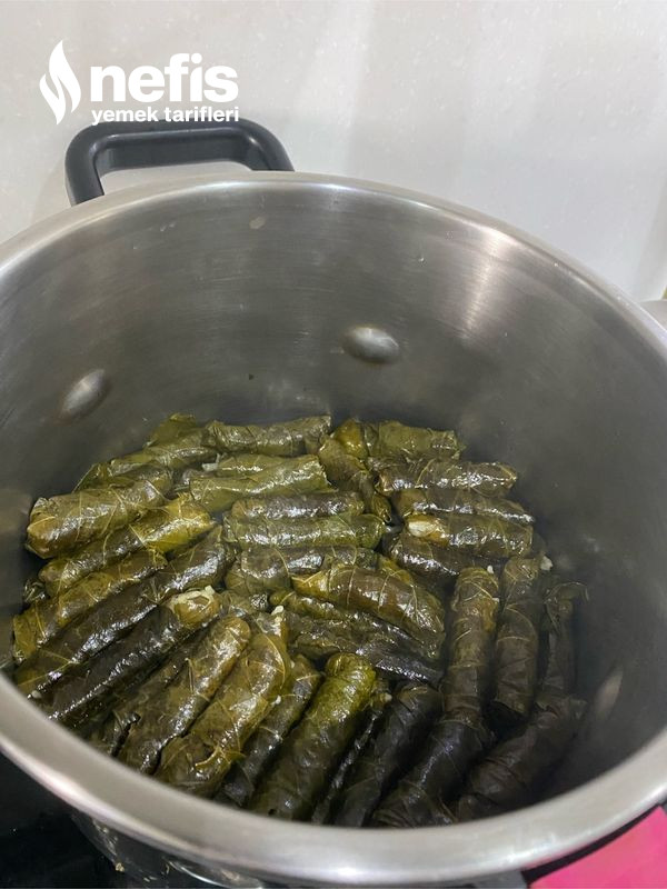 - Sarmaya başlayabilirsin. Tencerenin tabanına yaprakları koy iki çatalda olabilir yapışmaması için..