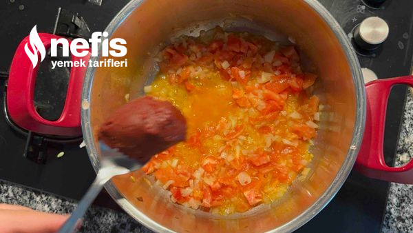 - Kavrulan domatesin üzerine salça ek edip 3 dakikada bu halde kavuralım.