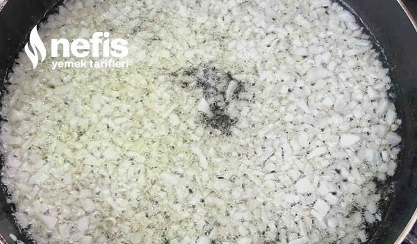 1. Bir tencerede zeytinyağında ince küp doğranmış kuru soğanları pembeleşene kadar kavuralım.