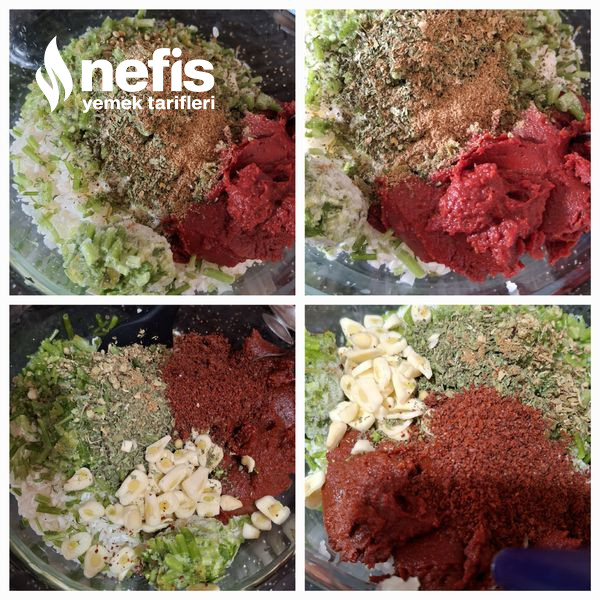 - Yaprağın geniş kısmına iç harçtan koyuyoruz. Rulo üzere iki yanlardan kapatarak sarıyoruz. Bu sürece yaprak bitene kadar devam ediyoruz. Bir bardağın yahut kasenin içinde salçayı koyuyoruz. Üzerine 1 su bardağı kadar su ekleyip karıştırıyoruz. Buradaki maksadımız salçayı incelterek topaklanmasını önlemek olacak.