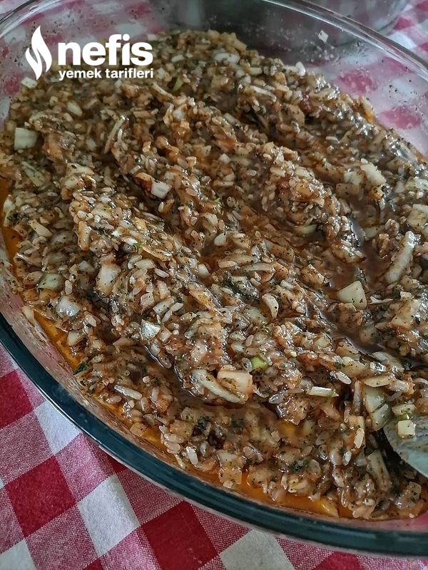 4. Soğanı, pirinçi öteki materyalleri derin bir kaba alıp uygunca karıştıralım. Gereçler birbiri ile özleşsin.
