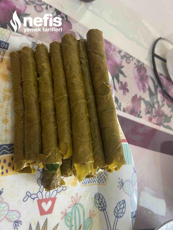 - Yapraklarımızın damar kısımları üstte kalacak halde düz bir tabanda kenarlarını katlayıp ince ince sarıyoruz.